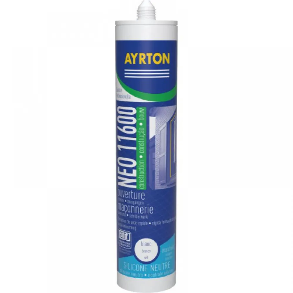 Le Silicone Ayrton Construction 11 600 est un mastic silicone neutre monocomposant spécialement conçu pour les travaux d’étanchéité dans le bâtiment.